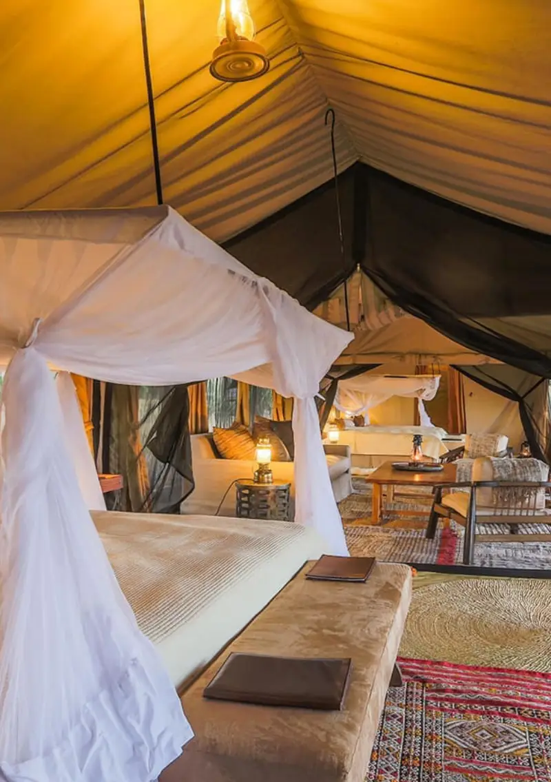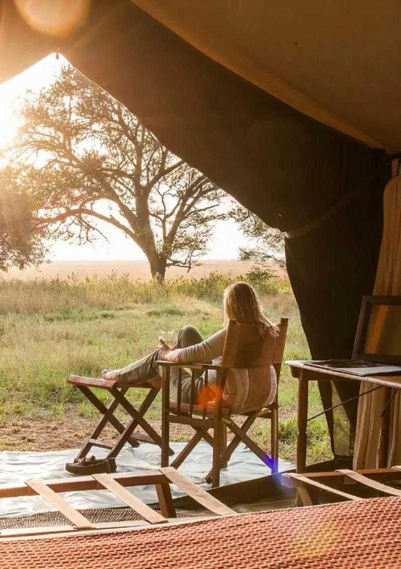 Serengeti Migration Camp offers panoramic views, elegant tents, and close proximity to wildlife, especially during the Great Migration season.