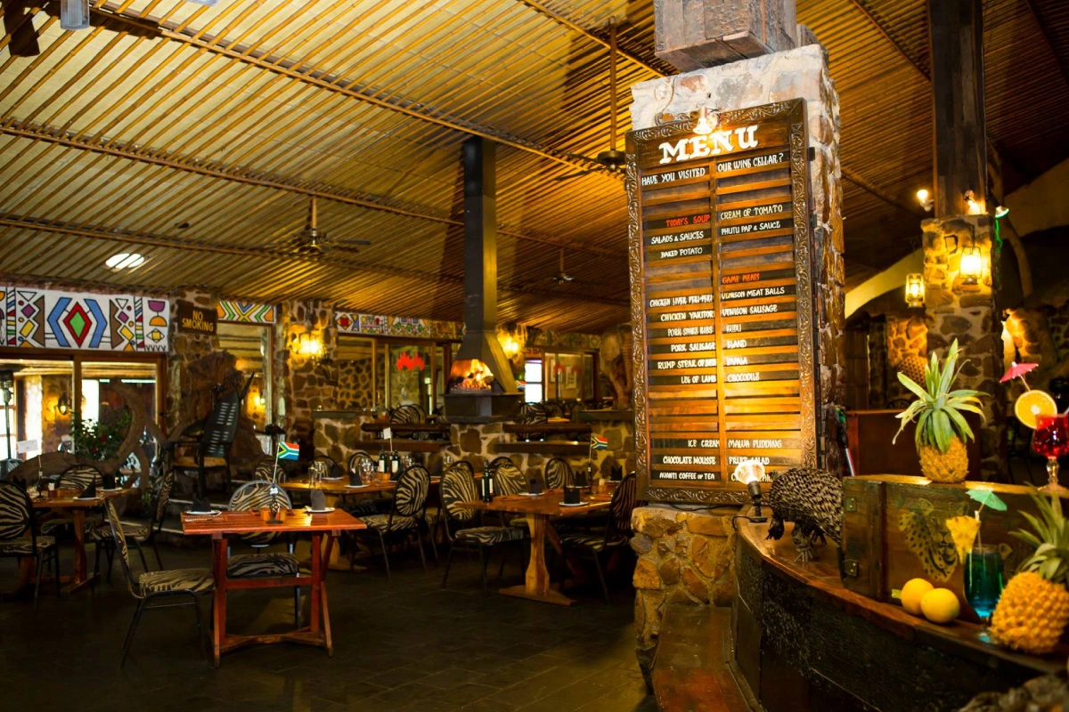Immerse yourself in a lively, rustic, African-inspired setting with Maasai décor, creating a medieval banquet hall ambience.